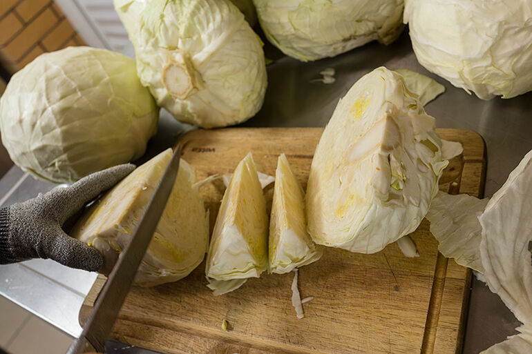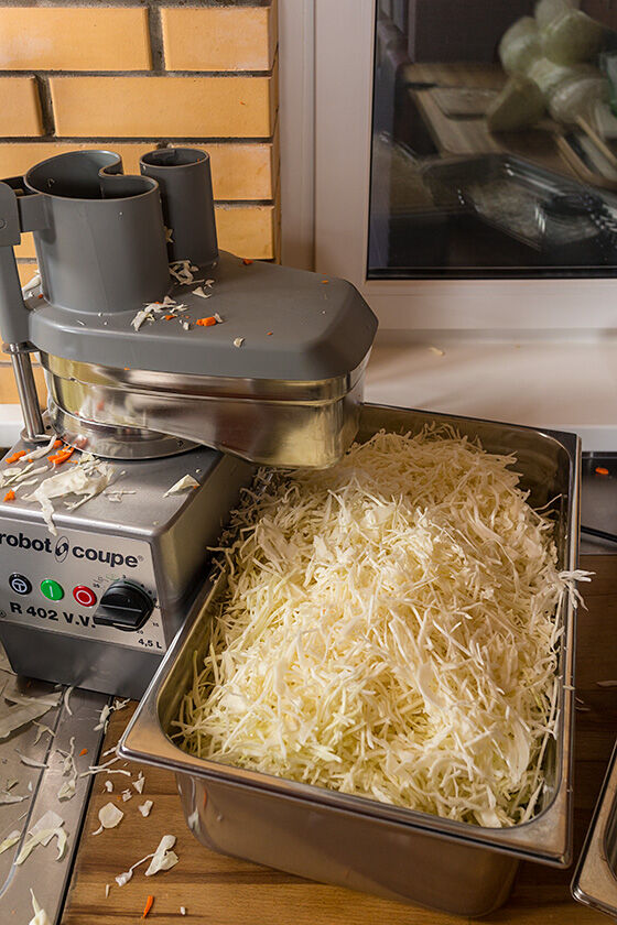 Мы резали капусту комбайном и здесь есть одна хитрость.