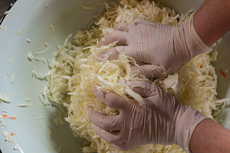 А в этом случае у нас 70% капусты порезано крупно, сока она выделит значительно меньше, следовательно, и кислоты тоже будет меньше. Ну и что теперь делать? Все пропадет, испортится?