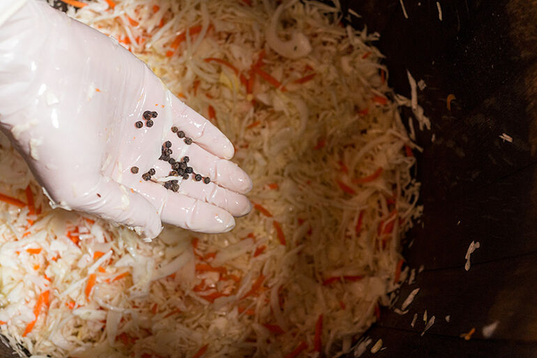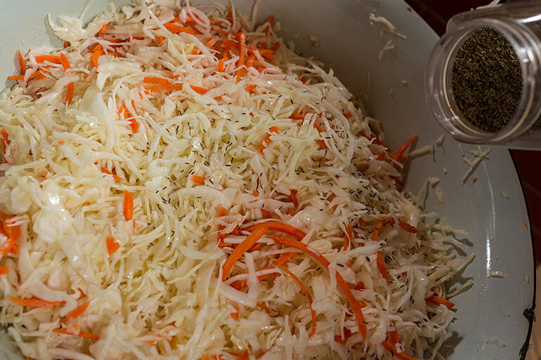 Вообще, в капусту традиционно закладывают тмин. И тмин закладывают не столько ради вкуса, если честно говорить, сколько ради пищеварения. Простите за подробности, но тмин в капусте предотвращает газообразование в кишечнике.