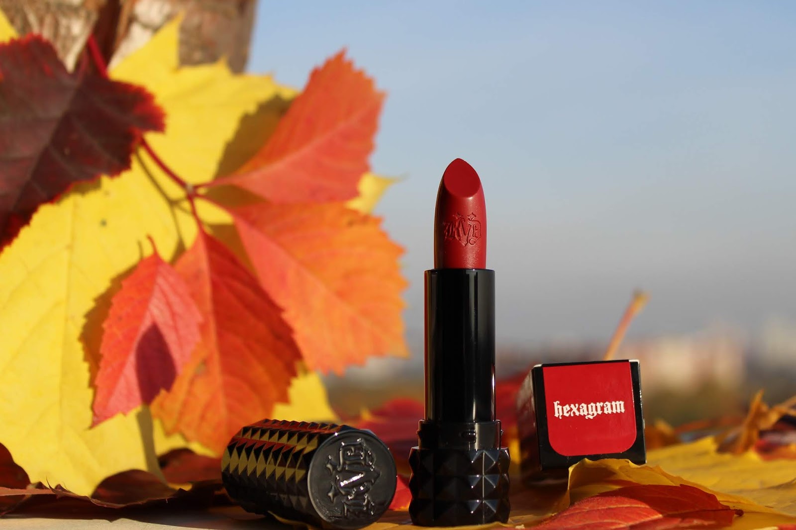 Что выбрать для знакомства, с недавно появившимся в Москве, культовым брендом Kat Von D? Конечно красную помаду решила я, и выбрала приглушенно-красный, так сказать "политкорректный" оттенок Hexagram, который идеально соответствует осеннему настроению.