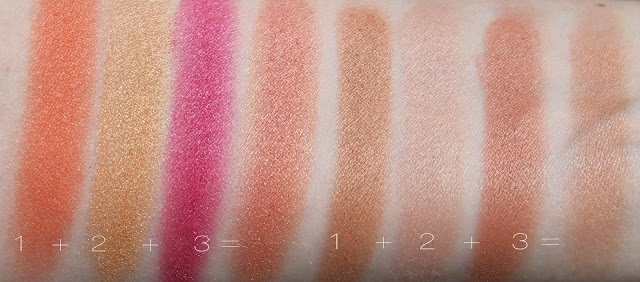 Потрясающая, гибридная текстура румян создана благодаря новой технологии превращения жидкой формулы в "мягкую" пудру. Кажется, что набираешь сухие продукты, а при нанесении они настолько легкие и скользящие, что уже похожи на кремовые. Средство три в одном - румяна, бронзер, хайлайтер, разглаживает, корректирует и моделирует контуры, придает сияние и подчеркивает загорелую кожу. Более смелые, более яркие варианты, подходят в качестве румян и теней, а три нейтральных тона могут заменить пудру и хайлайтер. Все шесть оттенков очень мягкие и податливые, степень пигментации варьируется от легкой до непрозрачной, цвета можно использовать соло или смешивать, создавая образы по своему вкусу, если провести кистью поперек по всем оттенкам, то получается красивый цвет для румян.