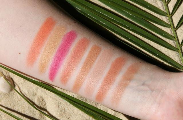 Палетка своим видом поднимает настроение и позволяет создать множество образов, так как включает в себя румяна, бронзер, пудру и хайлайтер.