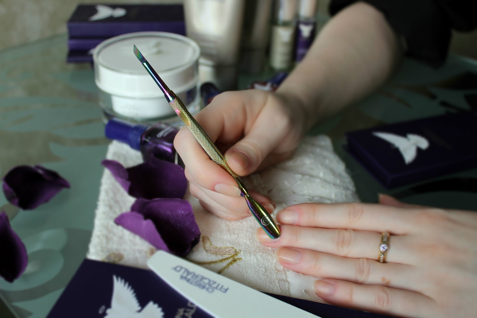 При пользовании этой пилкой образуется минимум ногтевой пыли, края у ногтей получаются ровными, не слоятся. Кстати все инструменты Christina Fitzgerald продаются в стильный фиолетовых футлярах с магнитной защелкой, это удобно и практично - во-первых, пилка защищена от повреждений и грязи, а во-вторых, ее можно взять с собой куда угодно.