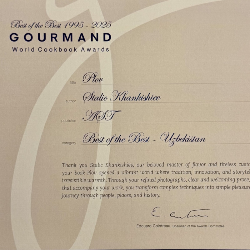 Спасибо Stalic Khankishiev, нашему любимому мастеру вкуса и неутомимому хранителю кулинарного наследия, ваша книга ПЛОВ открыла яркий мир, где традиции, инновации и повествование кипят вместе с непреодолимым теплом. Благодаря вашим изысканным фотографиям, ясной и гостеприимной прозе и увлекательным видео, которые сопровождают вашу работу, вы превращаете сложные техники в простые удовольствия и превращаете каждое блюдо в путешествие по людям, местам и истории.