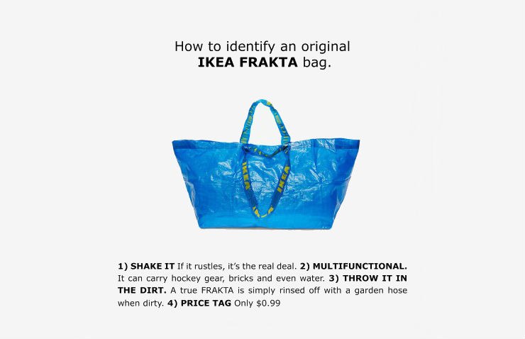 Но не только Prada умеет удивлять. Коллекция Balenciaga пополнилась синей сумкой, по цвету и форме сильно напоминающей мешок для покупок Ikea. Разница в цене значительная: если сумка Ikea стоит $0,99, то версия Balenciaga – $ 2 145. Мебельная компания с юмором отнеслась к ситуации и придумала специальную памятку для тех, кто специально для магазина Barneys New York.хочет отличить икеевскую сумку от дорогой подделки: