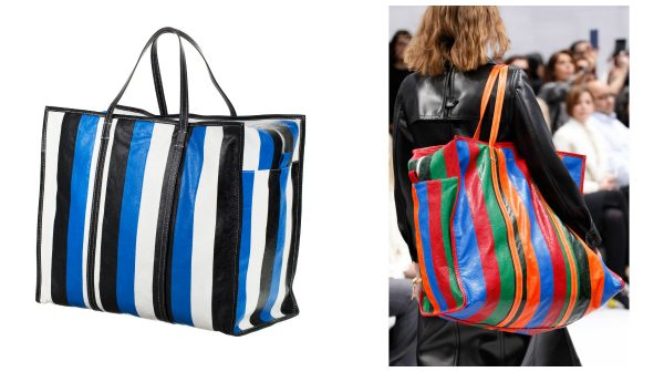 Вдохновившись дешевыми полипропиленовыми мешками, Демна Гвасалия придумал цветные шопперы еще в осенне-зимней коллекции 2016-17 года. Сумки обрели успех и снова вышли в продажу. Однако цена значительно отличается: вместо $1,5 выложить придется около $1645.
