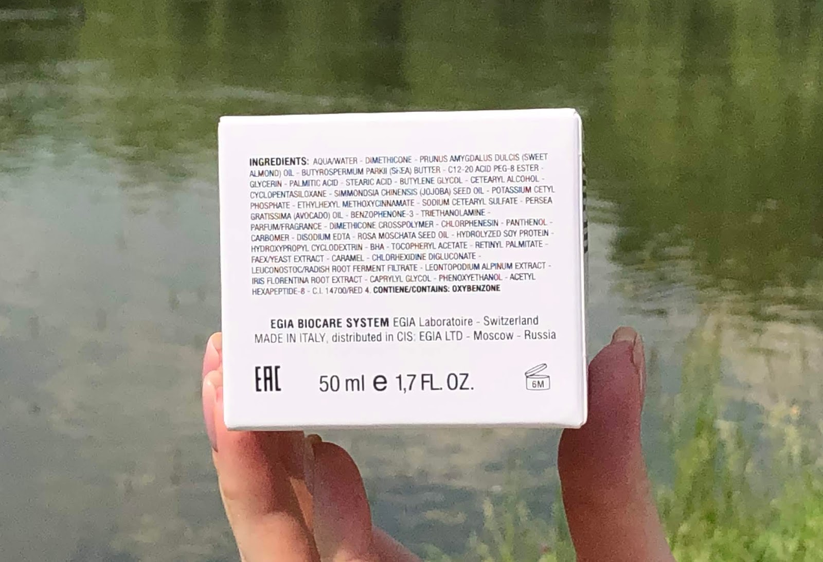 Как и заведено у профессионалов, главный акцент на эффективность средства, поэтому упаковка здесь лаконичная. По консистенции крем плотный, имеет приятный, пудровый, слегка сладковатый аромат, быстро впитывается, не оставляет ощущения тяжести и жирного блеска. Для нанесения нужно взять совсем немного крема, согревать его на пальцах и распределить вбивающими движениями. Крем достаточно жирный на ощупь, в составе есть: масло сладкого миндаля, карите, жожоба, авокадо, розы москеты, экстракт дрожжей, ферменты молочнокислых бактерий, пантенол, витамины А и Е, концептуальный запатентованный антивозрастной Е.С.А.-3 комплекс (экстракт сои, изофлавоны ириса и экстракт эдельвейса).