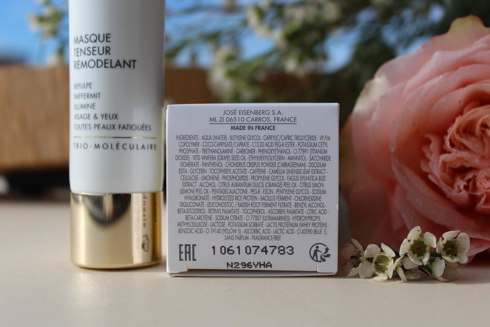 Состав маски насыщен маслами косточек винограда, сладкого апельсина и лимона, пантенолом, витаминами А и Е, экстрактом коры бука европейского, протеинов зародышей риса и пшеницы, обладающих мощными регенерирующими свойствами. Экстракты зерен кофе и зеленого чая усиливают процессы метаболизма в коже, оказывают отличный лимфодренажный и тонизирующий эффект. Фермент лактобактерий и молочная кислота препятствуют закупориванию пор, а гиалуроновая кислота наполняет кожу влагой.
