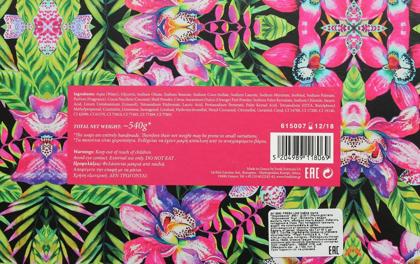 Состав у мыла, как и у всей косметики Fresh Line - радует! В качестве пенящего ингредиента используется натуральное вещество из пальмы и кокоса, также есть апельсиновое масло, льняное масло и т.д. Мыло хорошо мылится, дает мелкую пену, не сушит и не раздражает кожу, оставляет тонкий аромат на руках.