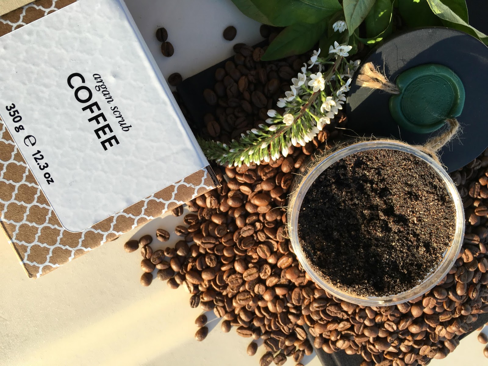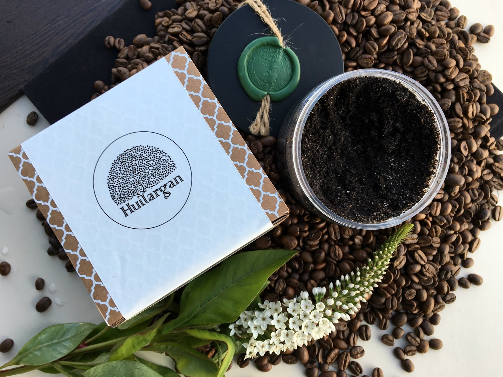 Скраб Huilargan Coffee оказывает лечебное, омолаживающее, кераторегулирующее и оздоровляющее действие на кожу, стимулирует расщепление жировых отложений, тонизирует и восстанавливает тургор кожи. Основой послужили марокканский молотый кофе, соль Мертвого моря, масло Арганы и комплекс других органических масел.