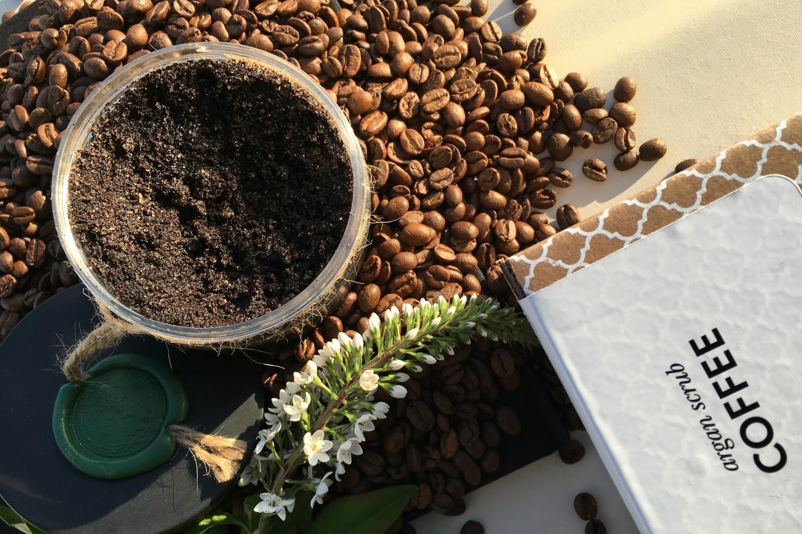 - Молотый кофе, отшелушивает ороговевшие клетки, стимулирует микроциркуляцию крови, помогает снять отечность, насыщает кожу полезными микроэлементами.