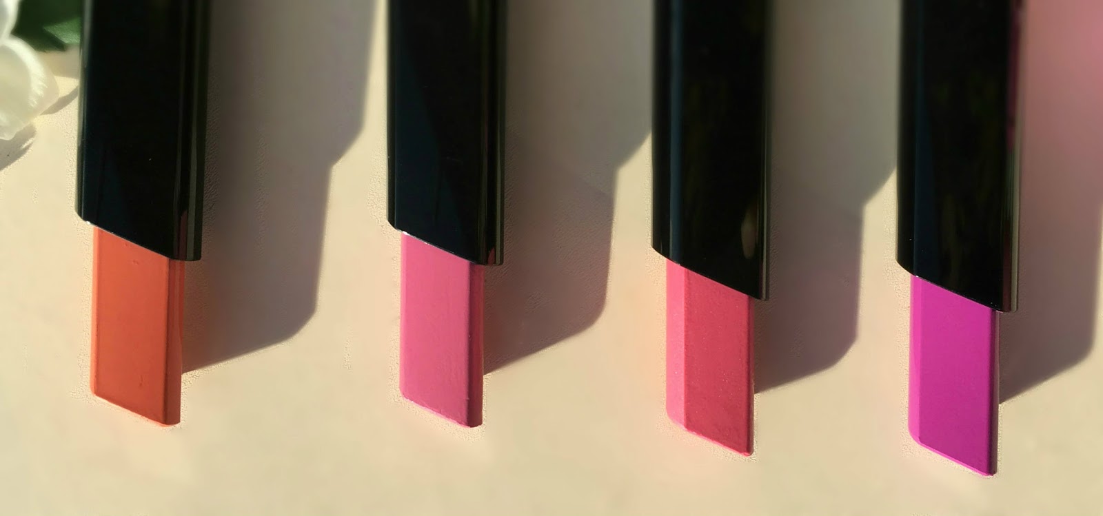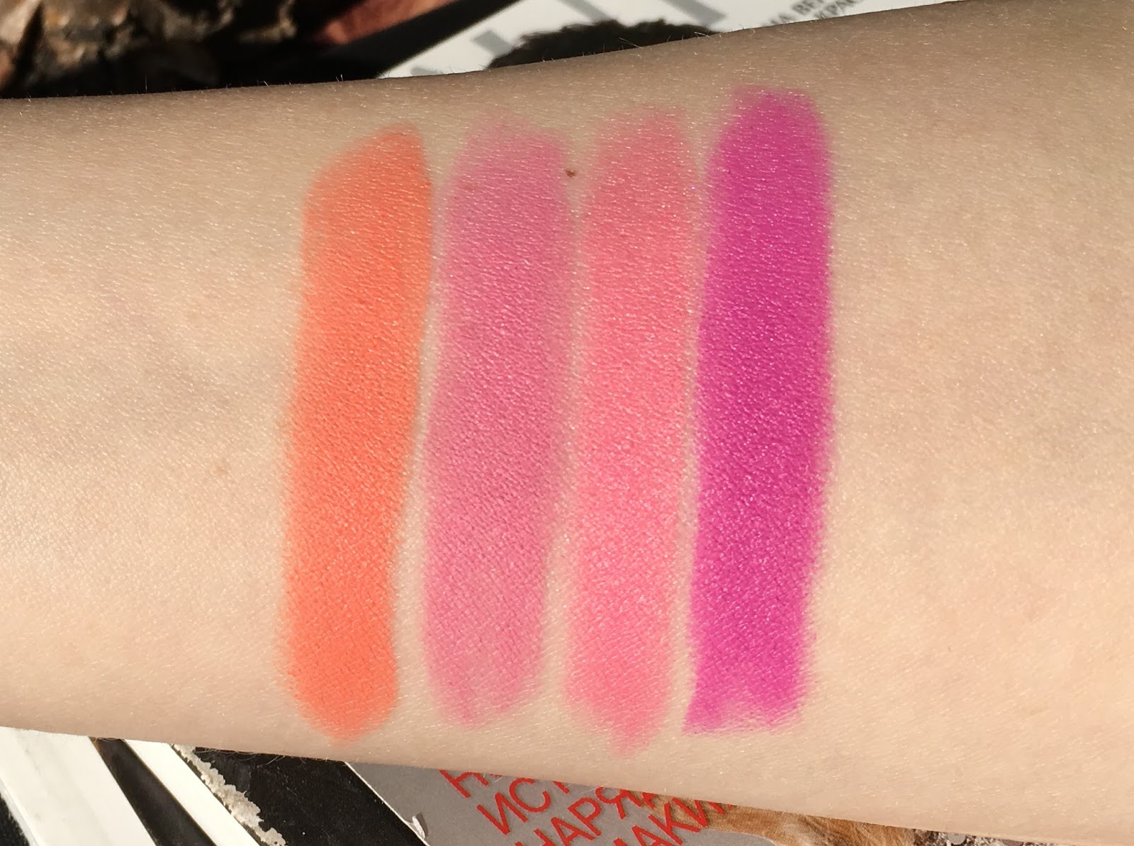 Дизайн у помады лаконичный и приятный на ощупь - матовый, колпачок надежно защелкивается и на нем есть цветное окошко в тон помаде, что удобно. Стик треугольный, скошенный. Сама помада имеет приятный аромат и отличную пигментацию, шелушение не подчеркивает, финиш дает скорее бархатный, губы не сушит, в составе масло Ши.