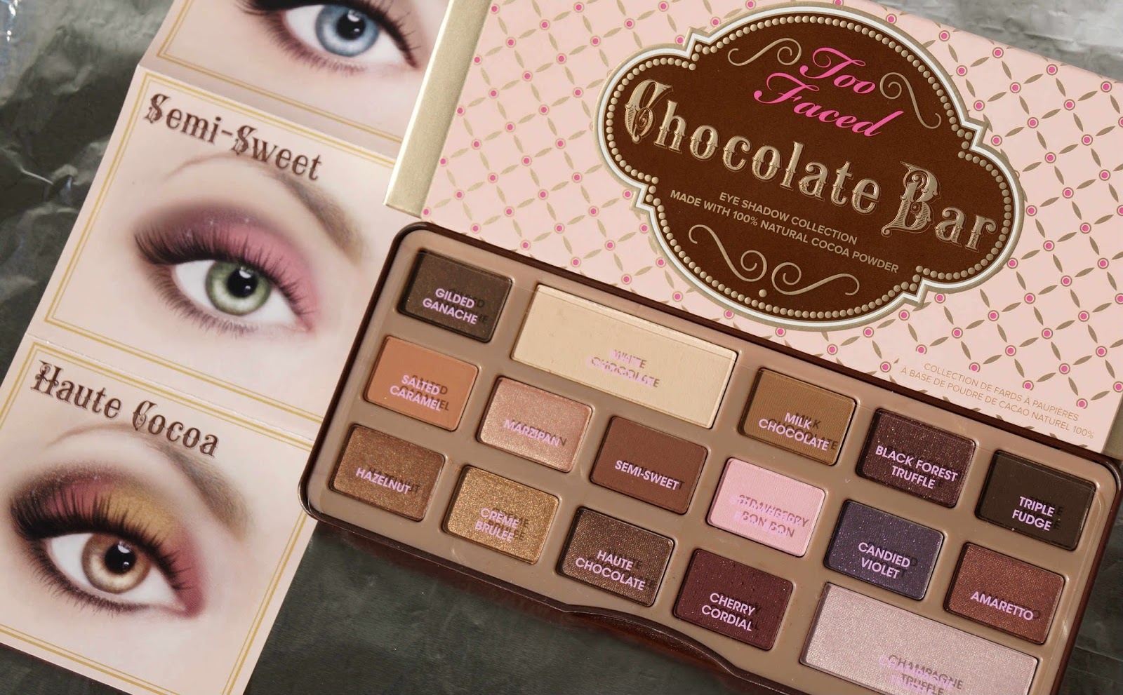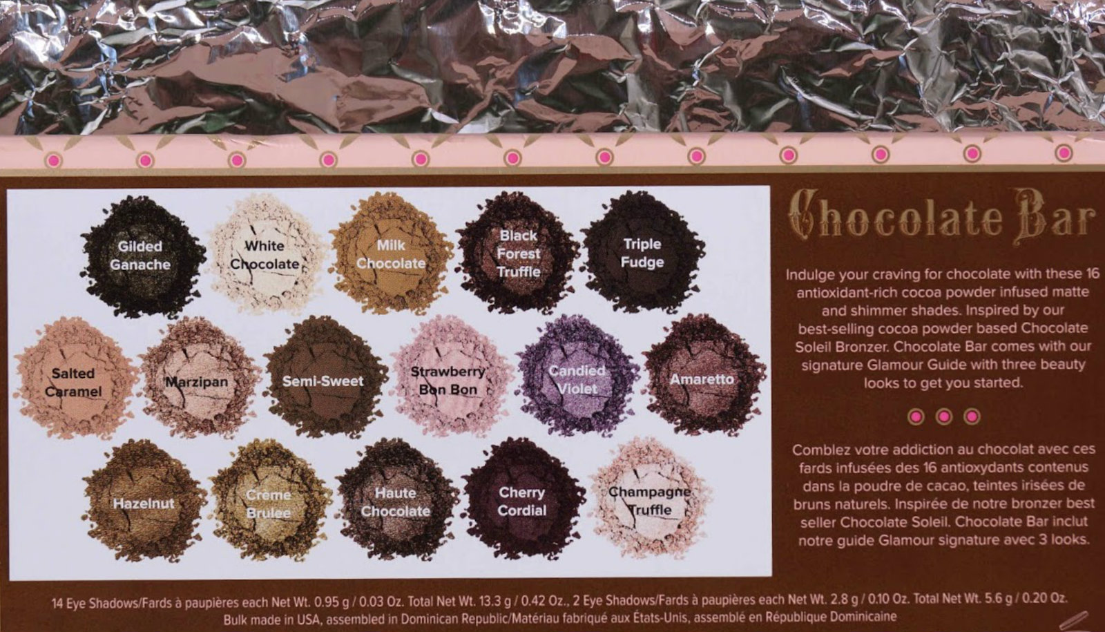 Палетка в форме шоколадной плитки - Too Faced The Chocolate Bar Eye Palette вышла несколько лет назад, но по прежнему мне очень нравится. Креативный директор Too Faced Jerrod Blandino узнал о полезных свойствах какао на Гавайях, и создал первую в своем роде палитру, которая сочетает целебные свойства шоколада с пигментированной и бархатистой фактурой теней, а также пахнет настоящим шоколадом. Палетка имеет оригинальный дизайн и включает тени для век с 16 оттенками разной текстуры: Gilded Ganache, Milk Chocolate, Black Forrest Truffle, Triple Fudge, Salted Caramel, Marzipan, Semi-Sweet, Strawberry Bon Bon, Candied Viole, Amaretto, Hazelnut, Crème Brulee, Haute Chocolate, Cherry Cordial, White Chocolate , Champagne Truffle.