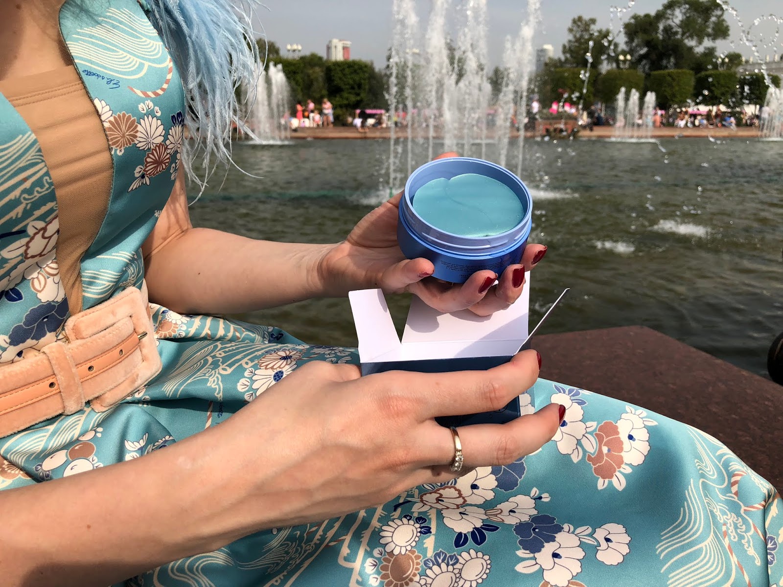 Упакованы патчи в лаконичную банку-шайбу цвета морской волны, которая изначально запечатана фольгой, также у самой банки есть защитная крышка и в комплекте - лопаточка. Сыворотки наполняющей баночку достаточно, чтобы все пластинки были хорошо увлажнены, поэтому приклеиваются к коже без проблем.