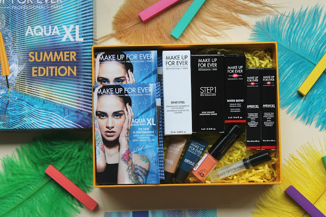Лимитированная коробочка GlamBox выпущена в сотрудничестве с Make Up For Ever и посвящена новой коллекции для макияжа глаз Aqua XL Color Collection Summer 2017 в сотрудничестве с американской R&B певицей Кейлани Пэрриш (Kehlani), которая и стала ее лицом. В коллекцию вошли 15 оттенков стойкой подводки Aqua XL Ink Liner и 20 оттенков новых кремовых теней-красок Aqua XL Color Paint.