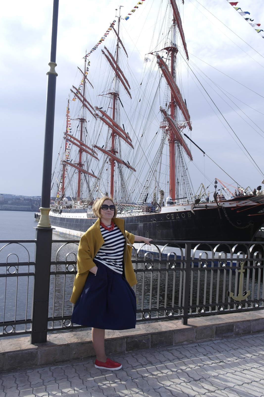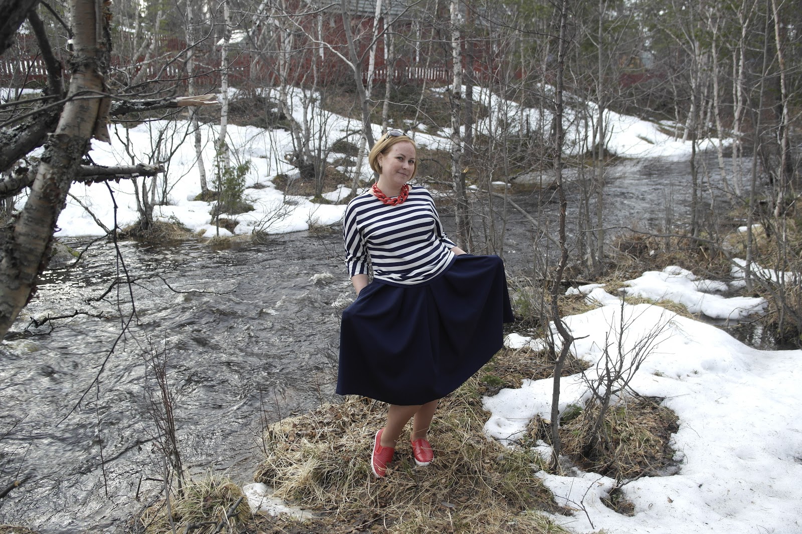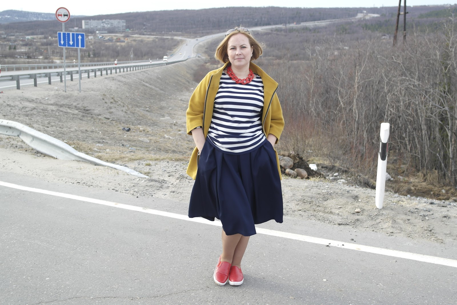 Лаконичный крой пуловера -тельняшки с круглым вырезом горловины и рукавами летучая мышь идеально подошел для моей фигуры.Ткань вискозный трикотаж,мимо него я не смогла пройти в магазине (поймала себя на мысли ,что я вообще не ухожу из магазина тканей пустой,поэтому мое появление там девочки-продавцы воспринимают как праздник,и считают что день удался).Ну а с юбкой все просто ,в стиле NEW LOOK,для нее я использовала итальянскую ткань,плотную и тяжелую.,потайная молния сбоку,карманы в боковых швах ,так же ее вы видели