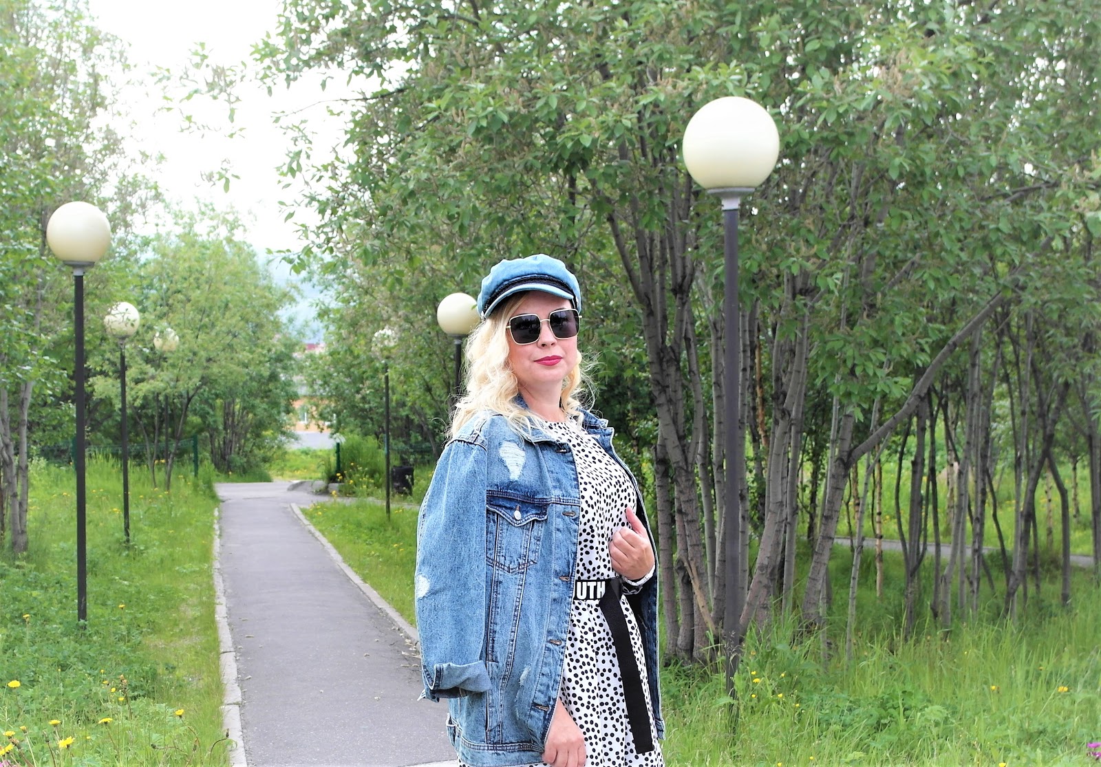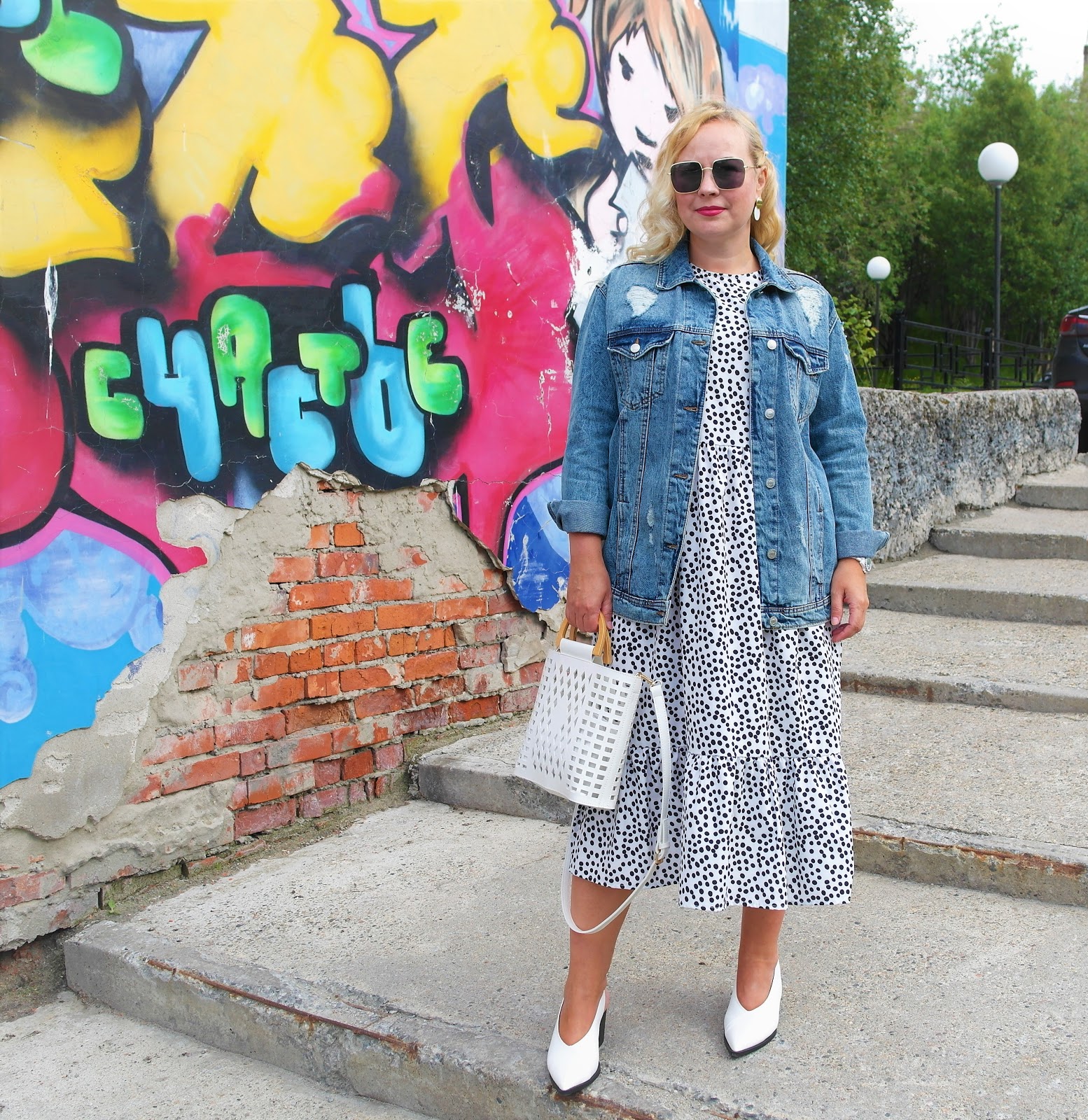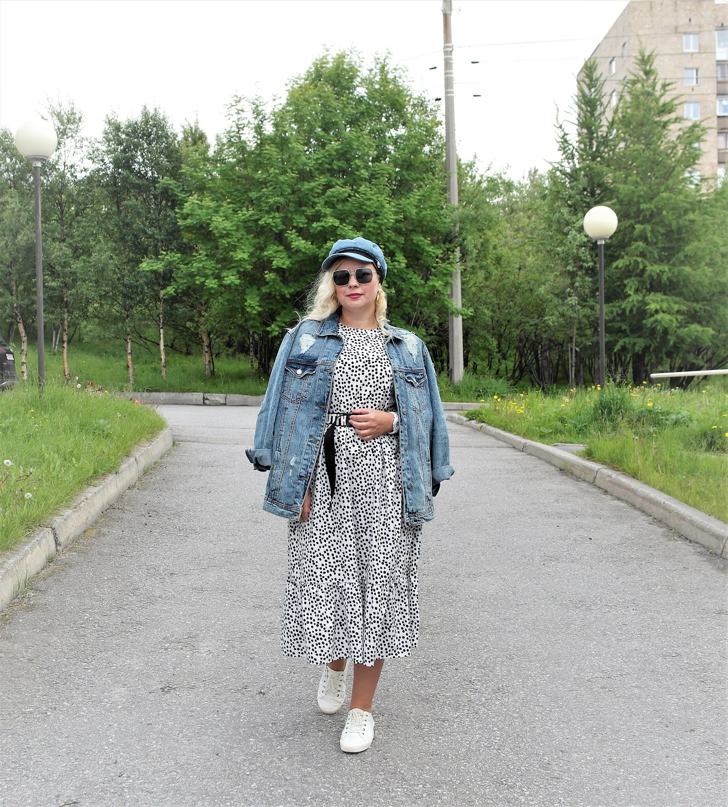 OOTD:джинсовка и платье в горох...........