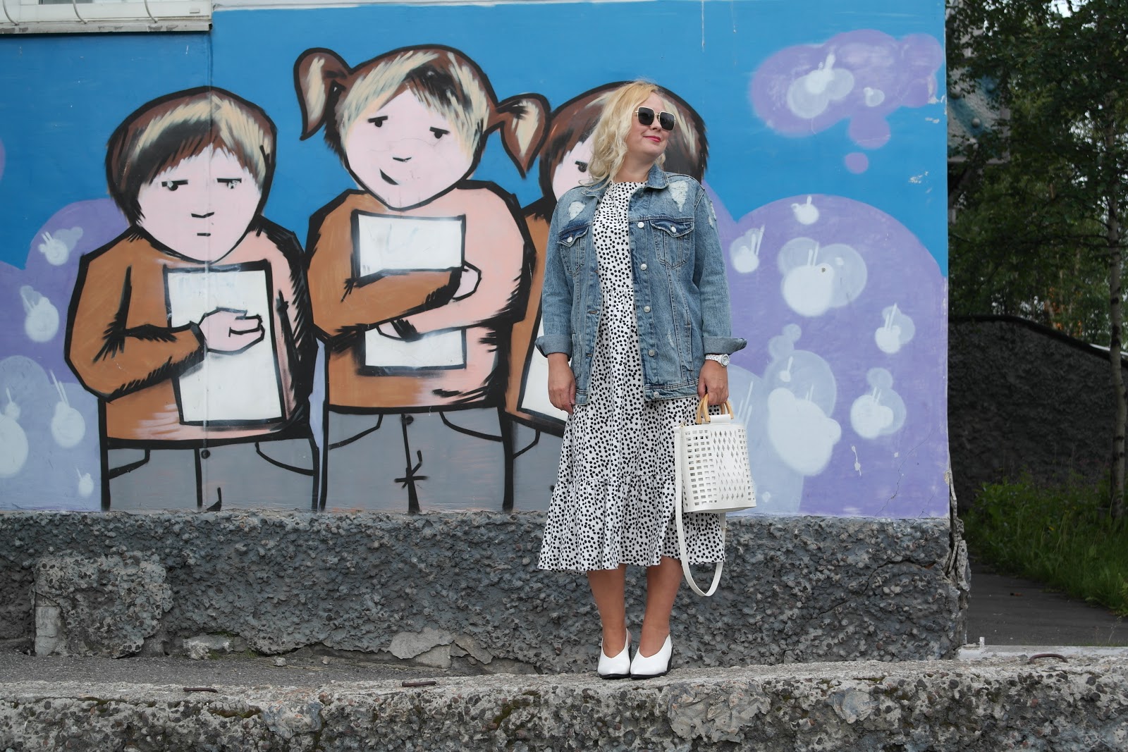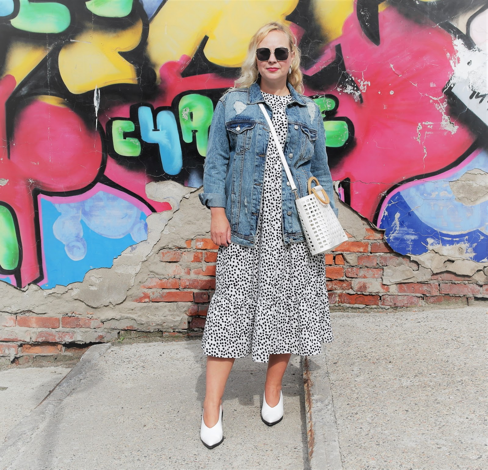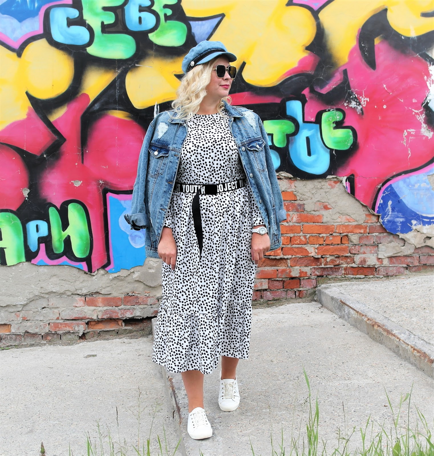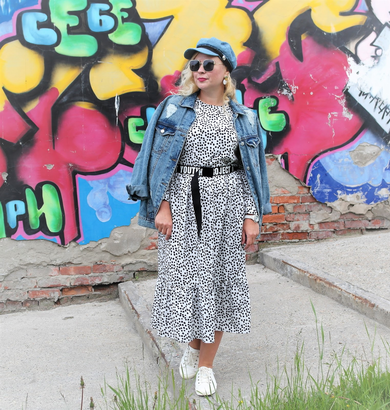 OOTD:джинсовка и платье в горох...........