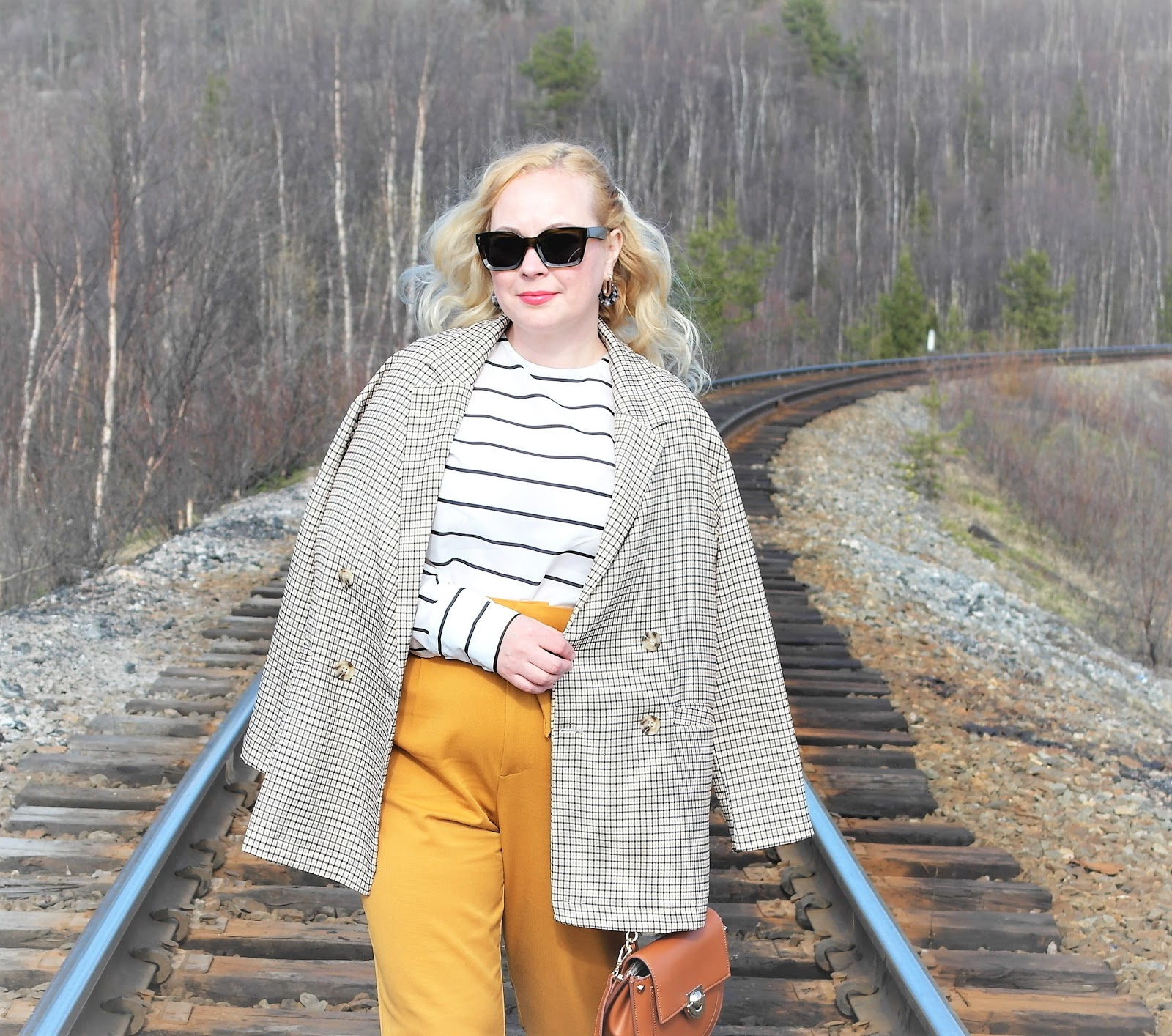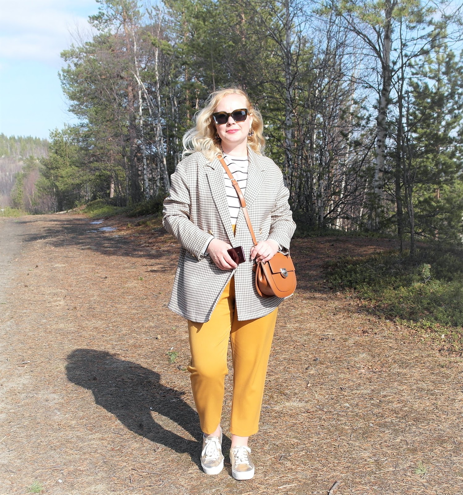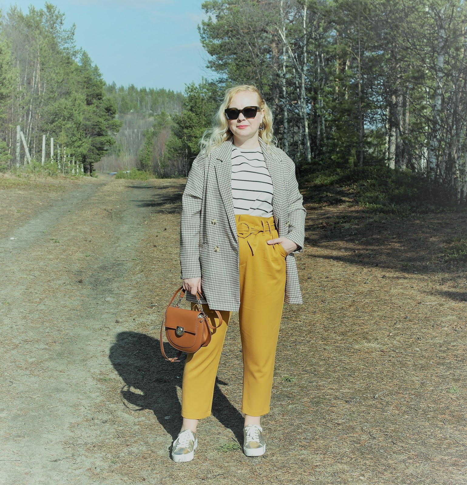 OOTD:жакет клетка,блуза полоска и брюки бананы...........