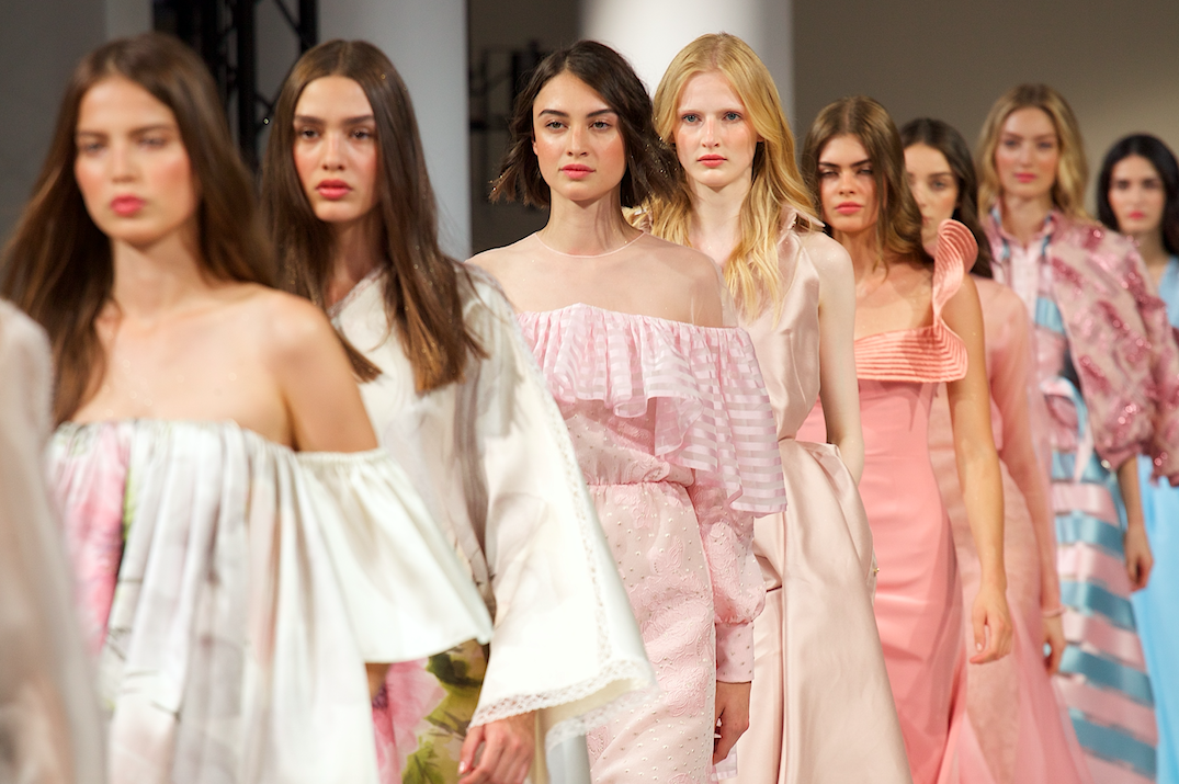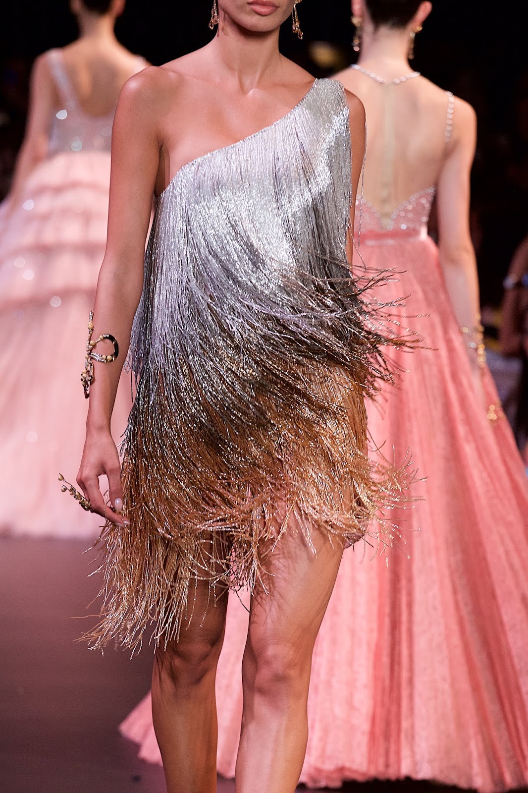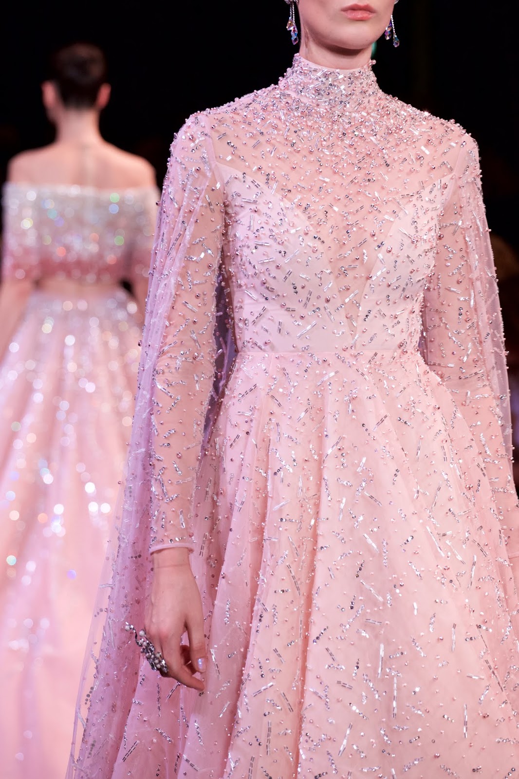 Like a precious wine in a subtle glass, the pink gowns flow and sparkle at George Hobeika A/I 18-19 Haute Couture