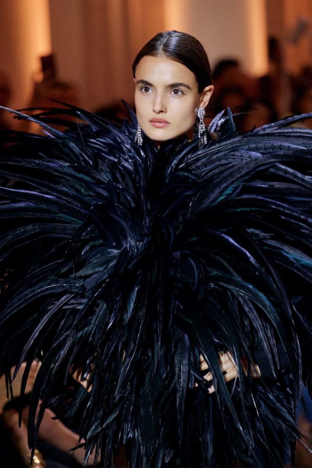 Black feathers and diamonds are precious composition at Alexander Vauthier