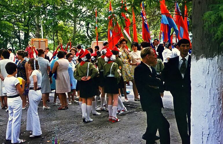 Вы не поверите, но на случайно найденных фотографиях наша школа! Высокая женщина на заднем плане - "англичанка", русский мужчина в костюме - трудовик, а молодой парень-узбек это наш физрук. Там и другие учителя инаш класс в гимнастерках.