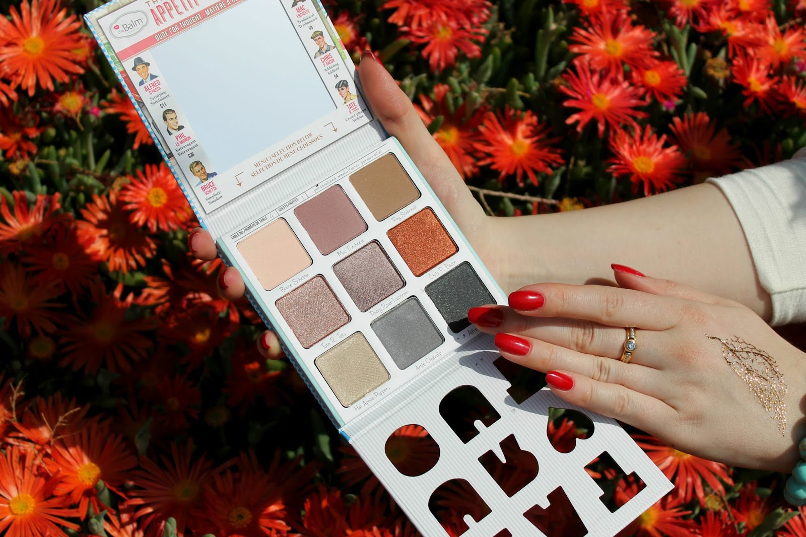 Недавно, у марки, которая мне нравится, появилась еще одна интересная палетка для истинных косметических гурманов - theBalm Appétit Eyeshadow Palette, в которой есть 3 бархатисто-матовых, 3 сатиновых и трое деликатно-шиммерных теней, с текстурой, не содержащей тальк (talc-free textures).