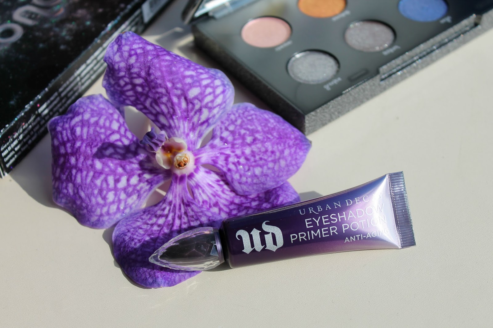 Urban Decay Eyeshadow Primer Potion Anti-Aging, которая повышает стойкость теней, стабилизирует интенсивность цвета, а также улучшает внешний вид кожи, день за днем уменьшая признаки старения. Светоотражающие частицы визуально разглаживают поверхность века, а высокотехнологичные компоненты борются с морщинками.